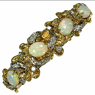 On a completely different note, I was looking at the little opal ring my mother gave me for my 16th birthday. I got to wondering if there was any “spectacular” jewelry made from opal. Here are some pictures.