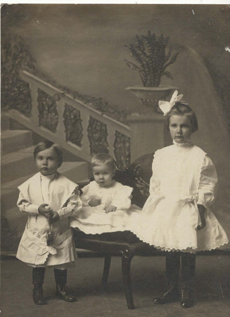 This is the only photo I have of Aunt Eleanor. To me, she was a shadowy figure, as she made her home far away in New York City. She made one visit to our home when I was six. She nearly six feet tall, and had long, long nails enameled red. The boys grew up at a time when boys were kept in skirts until they were about five or six: at which point they “breeched” and dressed in their first pair of pants.